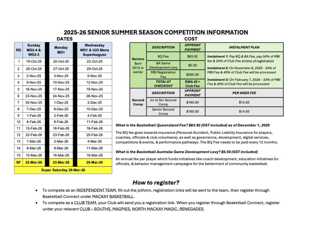 Seniors Home > Seniors Seniors 2025/26 Senior Summer Season Whether you are is aiming to improve, compete, or simply have fun, Mackay Basketball provides a supportive environment that meets a wide range of interests in the basketball community. Contact Us 107 Juliet Street, South Mackay (07) 4957 5543 Send Us a Message Full Name(Required) First Email Address(Required) Phone Number(Required)Message / FeedbackCAPTCHA Δ